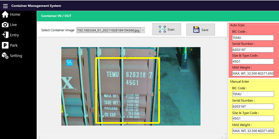 We have deployed Advanced Gate Optical Character Recognition (Gate OCR) System in order to automate capturing of: Container ID numbers, Container size, Tare weight and Registration number of Vehicle entering / exiting the Depot.